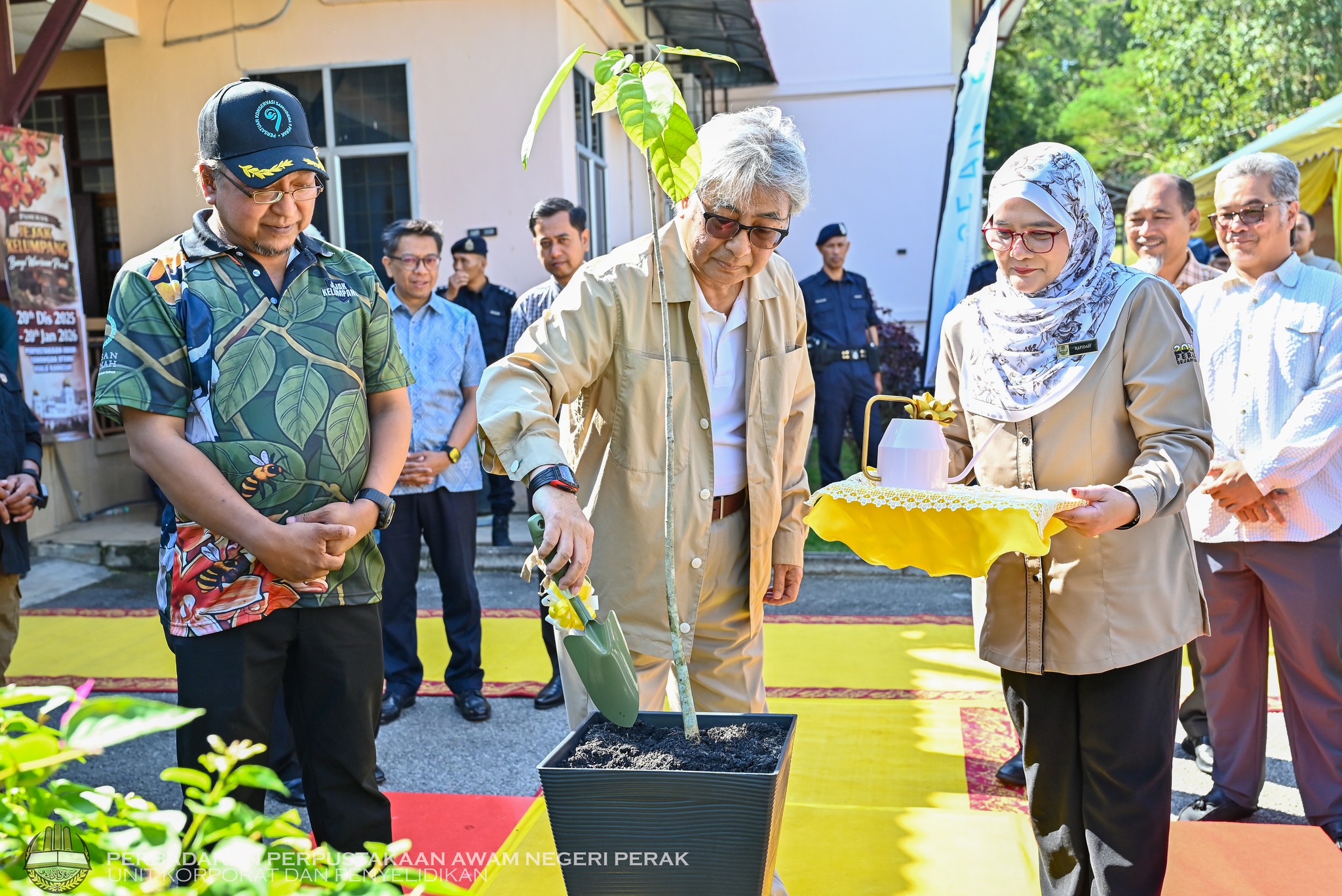 Sebagai simbolik pelancaran, DYAM Tuanku berkenan menyempurnakan majlis dengan penanaman anak pokok kelumpang serta melawat Pameran Jejak Kelumpang: Bunga Warisan Perak selepas majlis pelancaran.