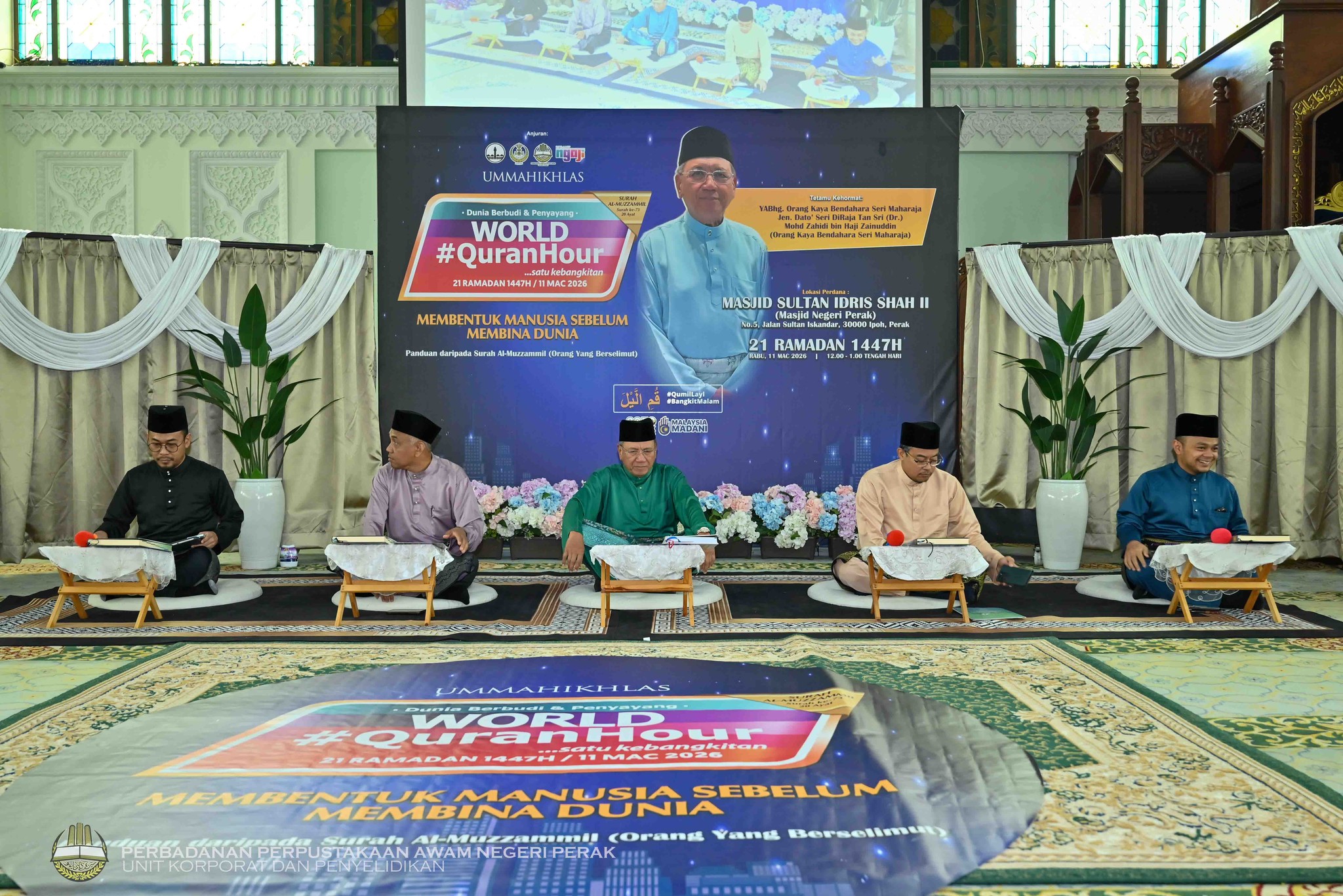 IPOH, 11 Mac 2026 – Program World #QuranHour 1447H peringkat Negeri Perak telah berlangsung dengan jayanya di Masjid Sultan Idris Shah II, Ipoh (Masjid Negeri Perak) pada 21 Ramadan 1447H bersamaan 11 Mac 2026, dari jam 12.00 tengah hari hingga 1.00 petang.